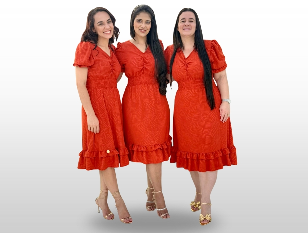 VESTIDO RIANA TECIDO CREPE, ELASTEX TOTAL NA CINTURA